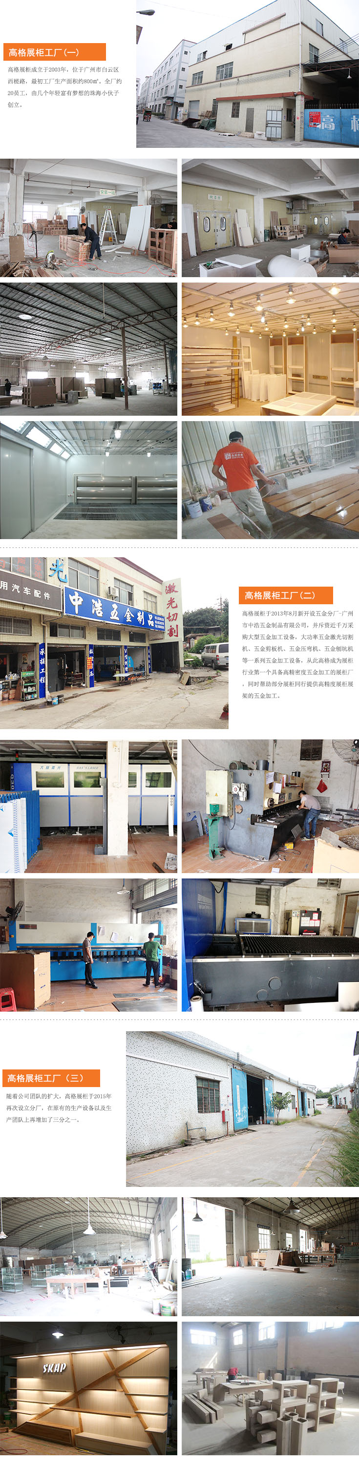 擁有各類展柜加工設(shè)備精密五金加工設(shè)備,剪板機(jī)、折彎?rùn)C(jī)、刨坑機(jī)、金屬激光切割機(jī)專業(yè)展柜生產(chǎn)廠房,無(wú)塵烤漆房等多種特殊造型設(shè)備,所有產(chǎn)品無(wú)需外協(xié)加工,低成本高品質(zhì)保證