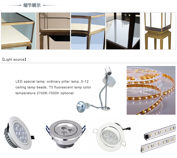 Gog display cabinet factory, stainless steel shelf processing based combined with concrete strength of wood production workshop, developed the 'hanging type''AA column' transverse slot type 'style, to provide professional props and costumes design and production task' for a number of clothing brand Jewelry cabinet with LED light gauge, density board paint