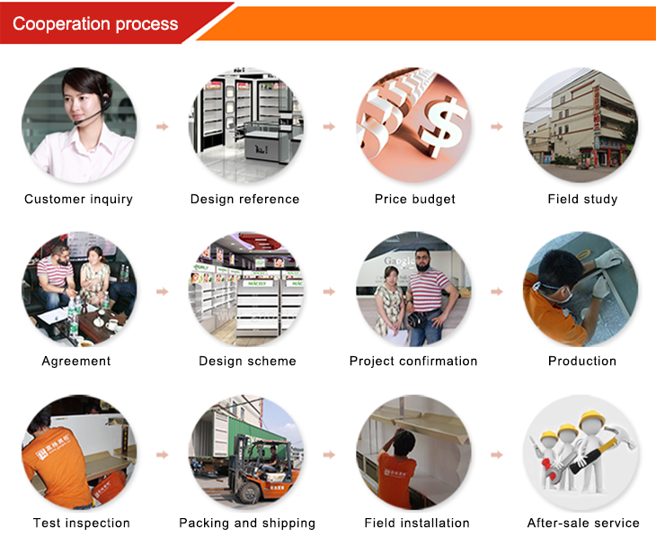 Because rack showcase belongs to customers customized products, also our strictly in accordance with the agreed upon by both parties to the raw materials and process production requirements, Guangzhou Gog showcase factory for all the products of the shipping company limited warranty